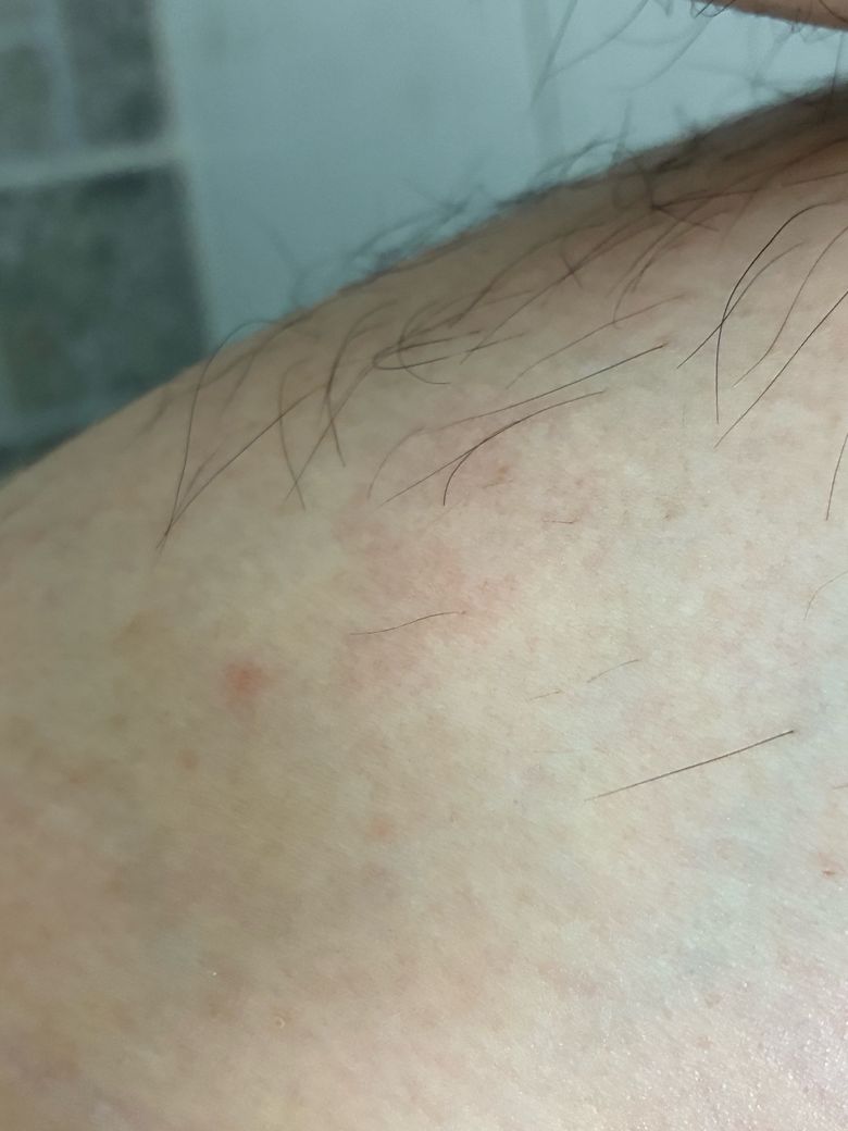 허벅지구요 남성이고 헤르페스인가 아님 뭔가 궁금해서 올렵하요 첫번째가 초기구요 두번째 사진이 현재입니다
