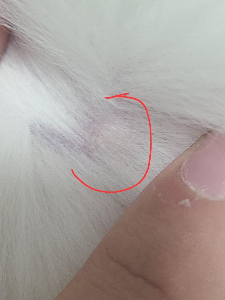 사진 상으로는 잘 보이지 않지만 강아지 등 부위에 뾰루지 같은게 털에 가려져 나있어요. 육안으로 볼 때는 농이 찬 듯 노란빛을 띄고 있습니다. 다른 피부와 대조하였을 때 보통의 분홍색 피부와 다르게 확연히 더 농이 찬 노란색을 띄어요. 아직은 하나만 있는 것 같고, 누르거나 만졌을 때 통증이 있는 것 같지는 않아요. 무슨 증상이고, 동물병원에 데려가봐야 할까요..?