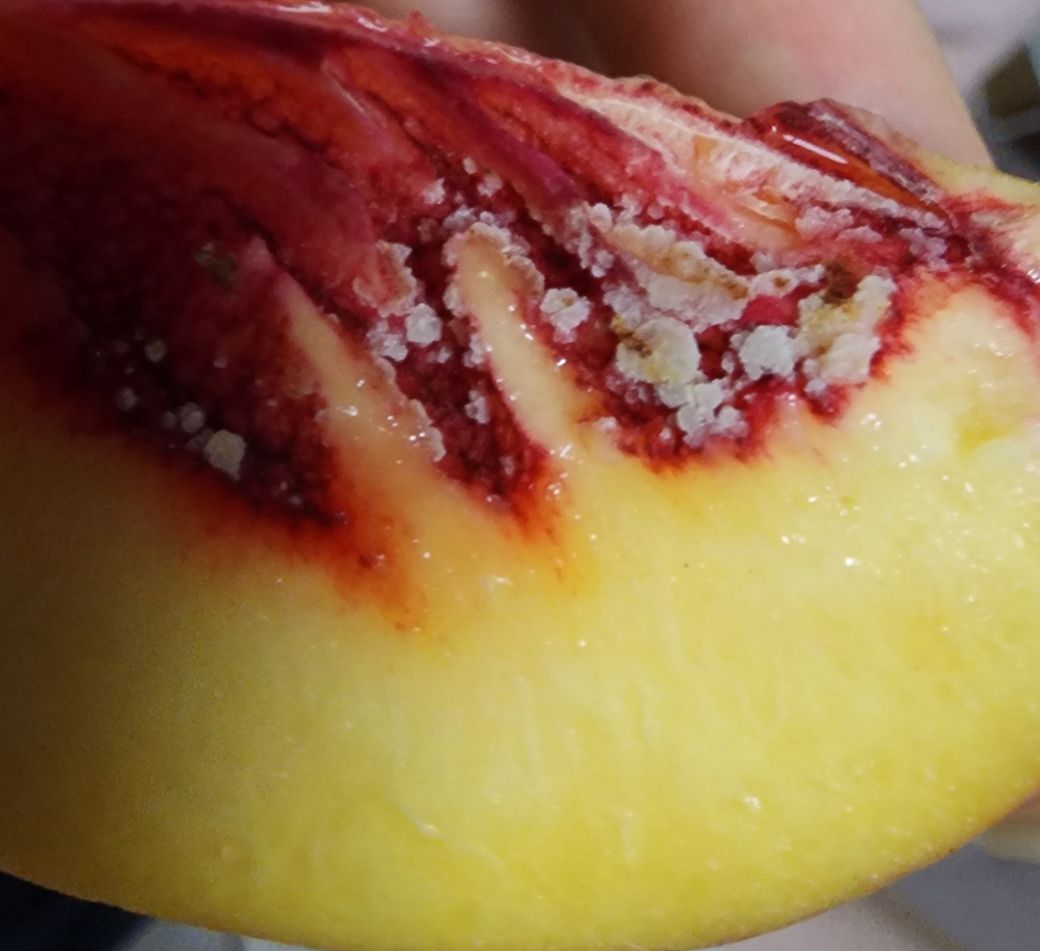 복숭아나 천도 복숭아의 씨앗과 과육 사이에 있는 하얀 물질은 과실의 자연적인 섬유질입니다.