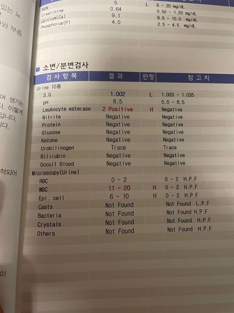 일단 소변에 백혈구가 나왔다는 것은 요로감염의 가능성이 있음을 시사합니다.