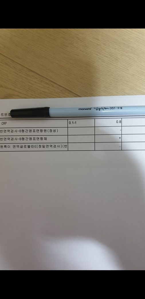 + 로 작성되어 있어 항체가 있는 것을 의미합니다. 정상적으로 항체가