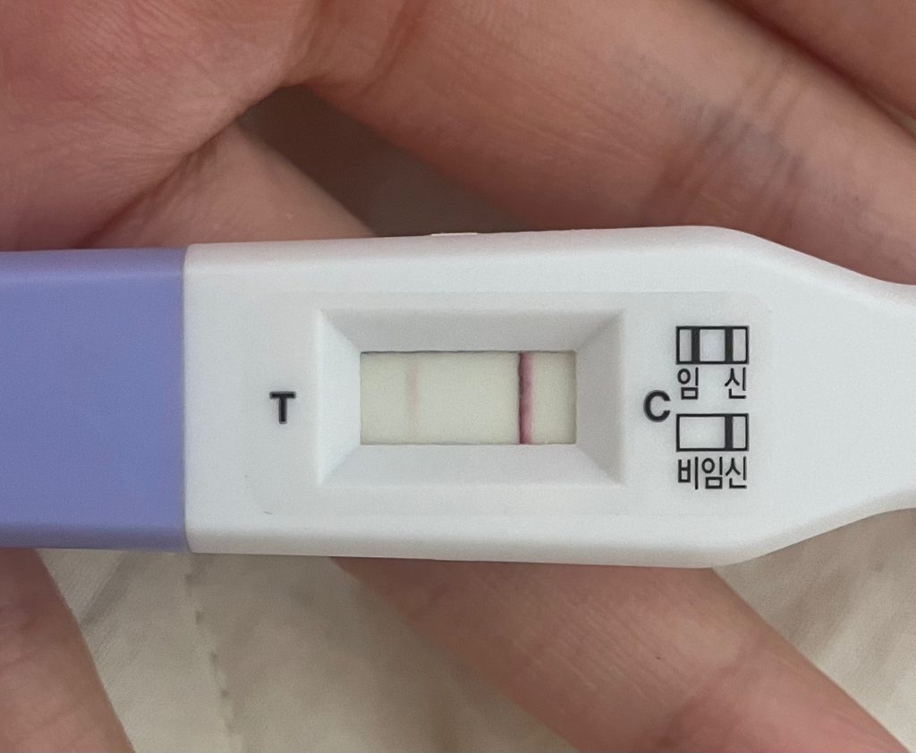 검사했을 땐 한 줄이였는데 몇 시간 뒤에 버리려고 확인해보니 사진 처럼 두 줄로 나왔었어요.