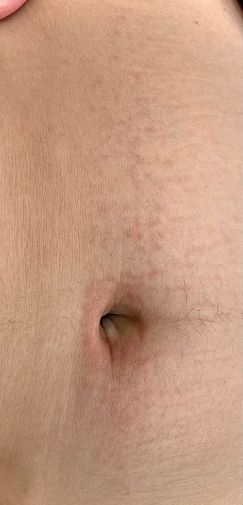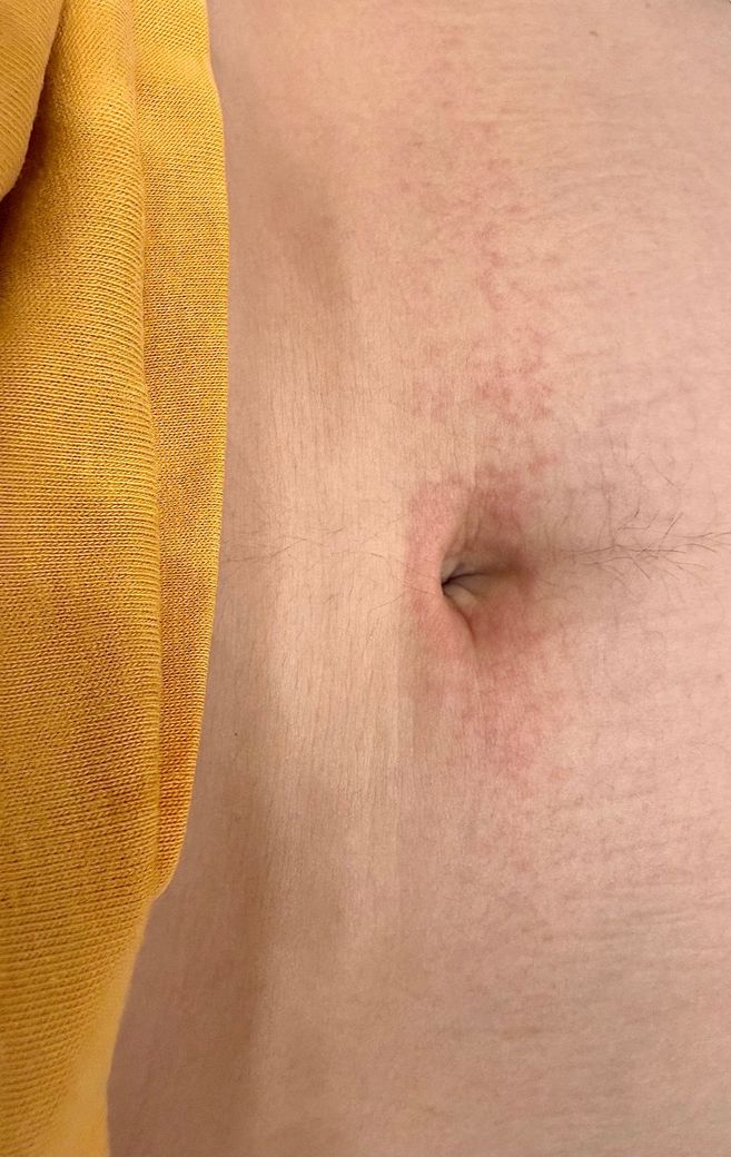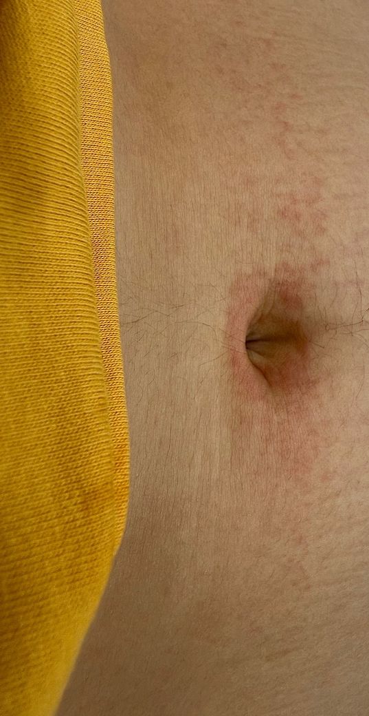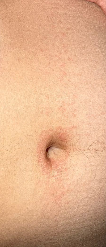 배꼽 주변에 둥글게 생겼다가 일자형태로 쭉 퍼지는 이 붉은 피부염 원인 증상이 뭐고 어떻게 해결해야 할까요?