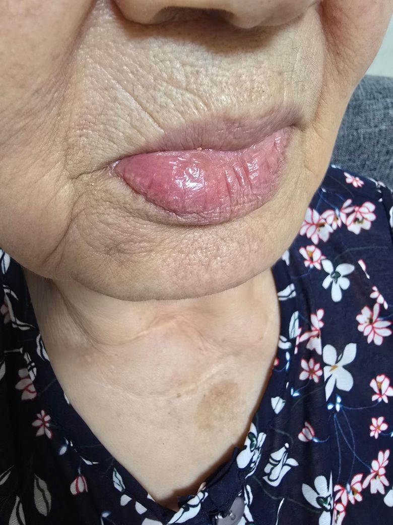 입술이 갑자기 부어 있으시네요