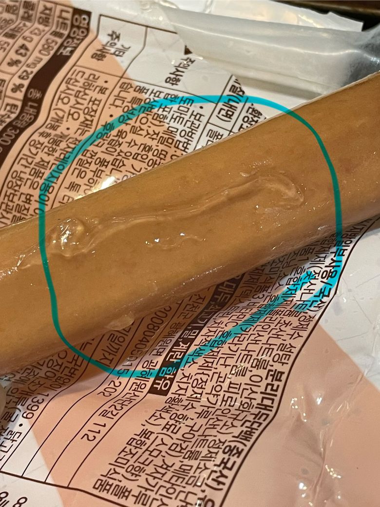 소세지에 이상한물질이 붙어있어요 이게 뭔가요?