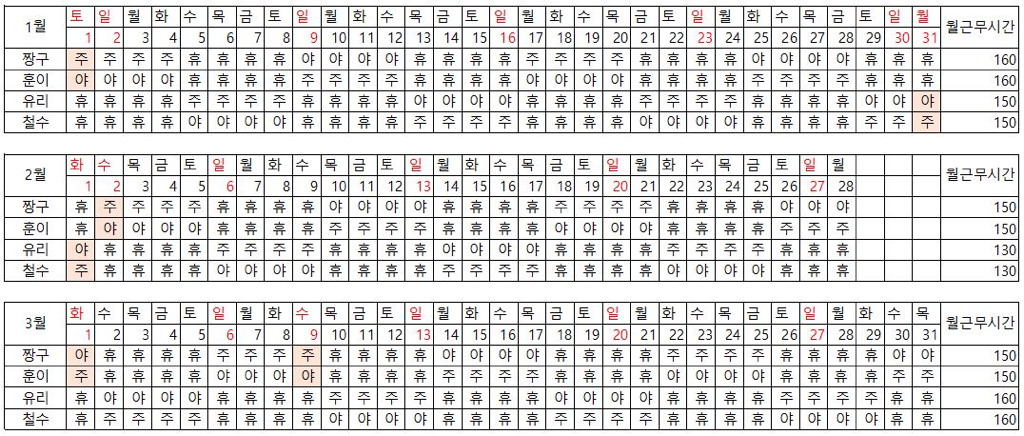 주간 4일 - 휴일 4일 - 야간 4일 - 휴일 4일