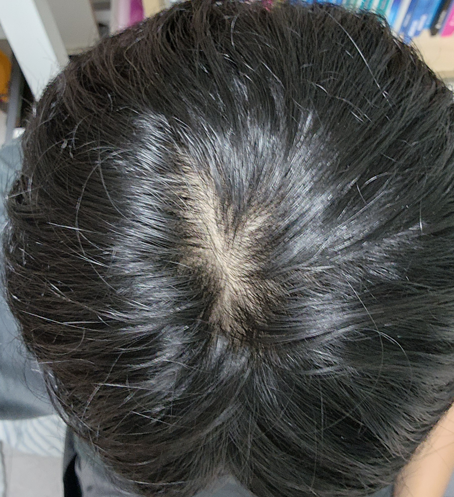 m자로 빠지는것은 아직 보이지않고 정수리쪽이 좀 더 비어보이는 것 같기도 합니다