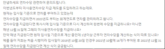 연차수당을 지급하면서 2023년도 부터는 회계연도로 연차를 관리하려고 합니다.