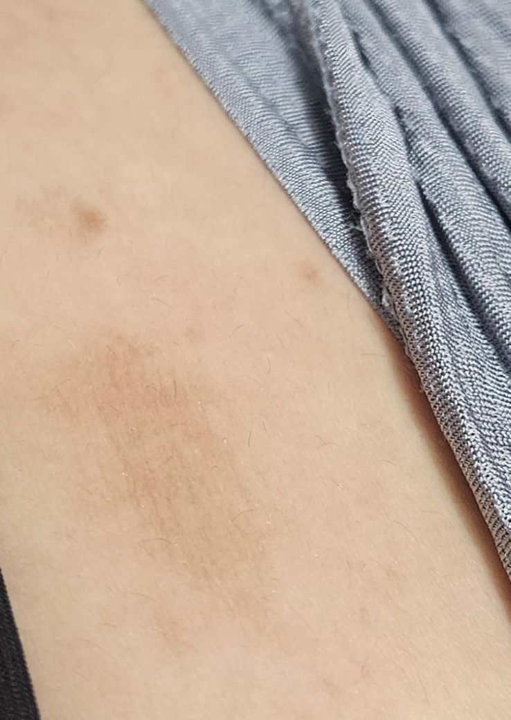 만져지는 느낌은 튼살? 이랑 비슷한 것 같아요 각질 많이 낀 피부마냥 비닐? 같은 느낌이에요 등허리쯤에 생겼어요 근데 색은 어둡고 최근에 과한 운동을 한 적도 살이 급격하게 많이 찌지도 않아서... 처음 생겼을 때는 저거 반만했는데 커졌어요... 이게 뭘까요ㅜㅜ
