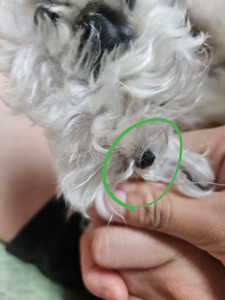 사진이 흐릿하고 털에 감춰져 정확한 판단이 어렵습니다. 동물병원에 데려가서 육안 평가를 받으시기 바랍니다.