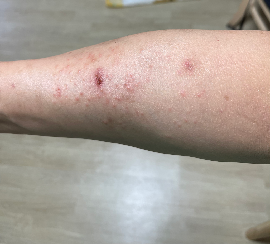 직접 진료하지 않아 정확한 답변은 어렵지만, 상처 부위 주변에 접촉 피부염이 발생한 것으로 생각됩니다. 소독약, 드레싱 밴드 등에 의해 발생할 수 있습니다. 가까운 피부과 병의원에서 피부염 치료를 받으시는 것이 좋을 것으로 생각됩니다.