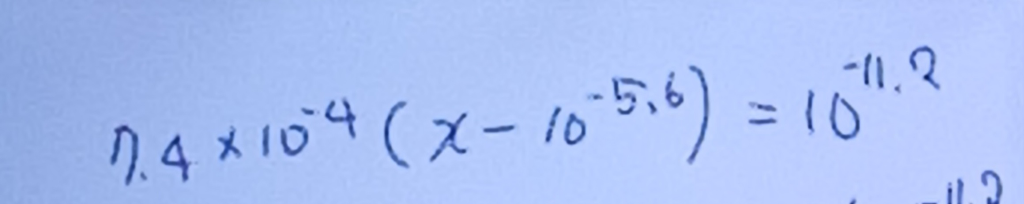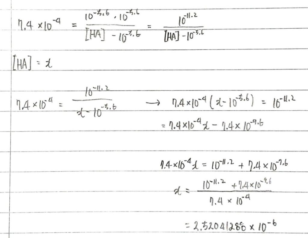 1. 산 해리상수 계산법에서 [HA]-10^-5.6 부분에서 -10^-5.6을 한이유가 무엇인가요?