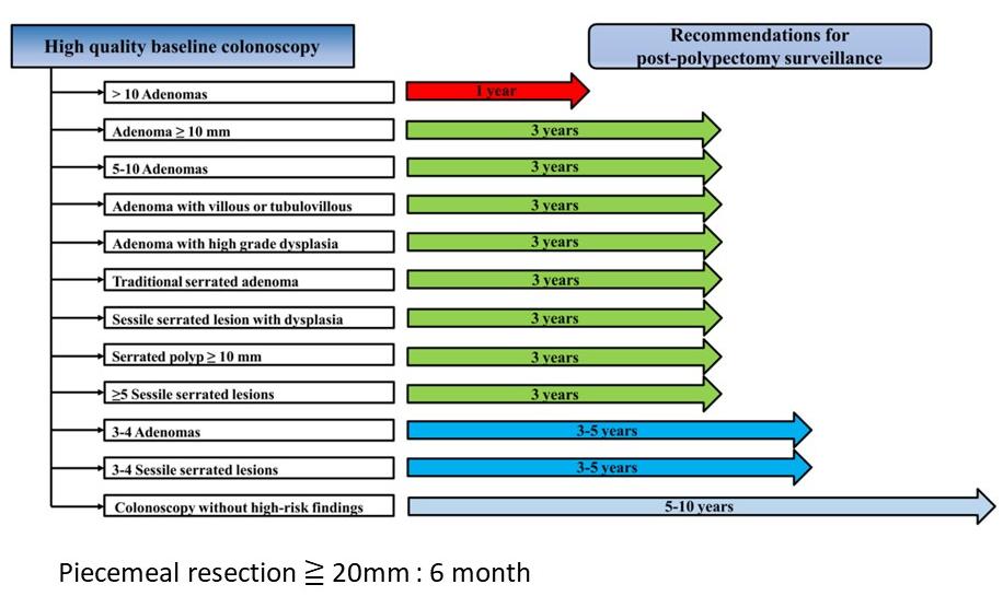 따라서 “2년마다”는 표준 권고 간격은 아니며, 대부분의 저위험 관상선종에서는 과도한 검사 간격에 해당합니다. 다만 가족력, 이전 검사 결과, 장정결 상태 등에 따라 개별 조정은 가능합니다.