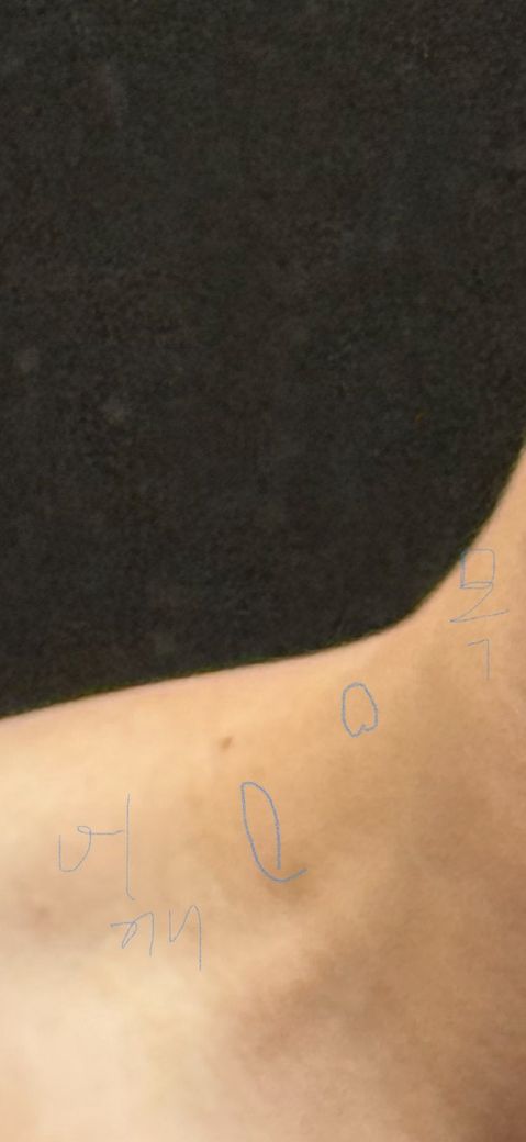 왼쪽 쇄골 목 옆 쪽에 새끼손가락 한마디보다 작고 1cm 정도 작고 동그란 멍울이 있어