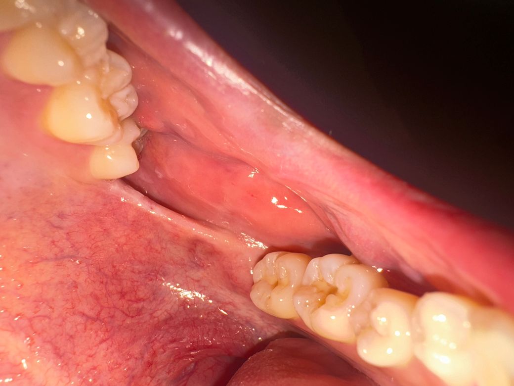 사진에 보시는것처럼 위사랑니자리위치와 아래사랑니자리 위치 사이 이어져있는 부분이 입을 벌리면 너무 땡겨요 그리고 흰색 뾰루지같은 염증이 생겨있어요. 한 두달정도 됐는데 안사라져서 어제 알보칠을 발랐는데 여전히 남아있네요. 구강암같은 증상일까요? (사진에 보이는 딱 왼쪽 위 자리만 사랑니가 없는데 그 위치만 통증이있네요.) 두달전에 오른쪽 아래 어금니에 충치떼우면서 입을 크게 벌린 적이 있었는데 그 때부터 통증이 생겼습니다.4개의 답변이 있어요!