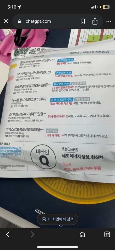 두번째 사진은 부작용이 있었던 약 입니다.