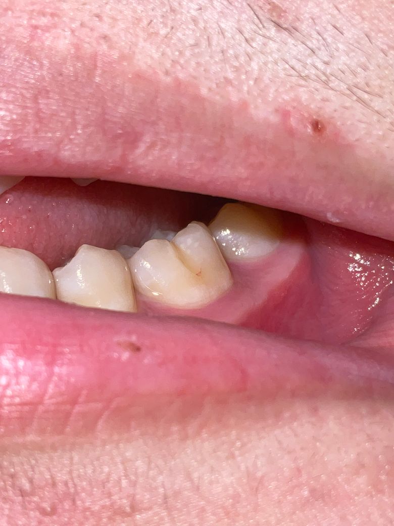 정확한 판단을 위해서 치과 방문이 필요해보입니다. 통증이나 불편감이 있는지에 따라 다를 것으로 보이나 현재 사진만으로는 정확한 판단이 어렵습니다. 따라서 불편감이 있거나 색이 너무 다르다고 생각이 된다면 치과 방문 후 평가를 받아보는 것이 필요합니다.