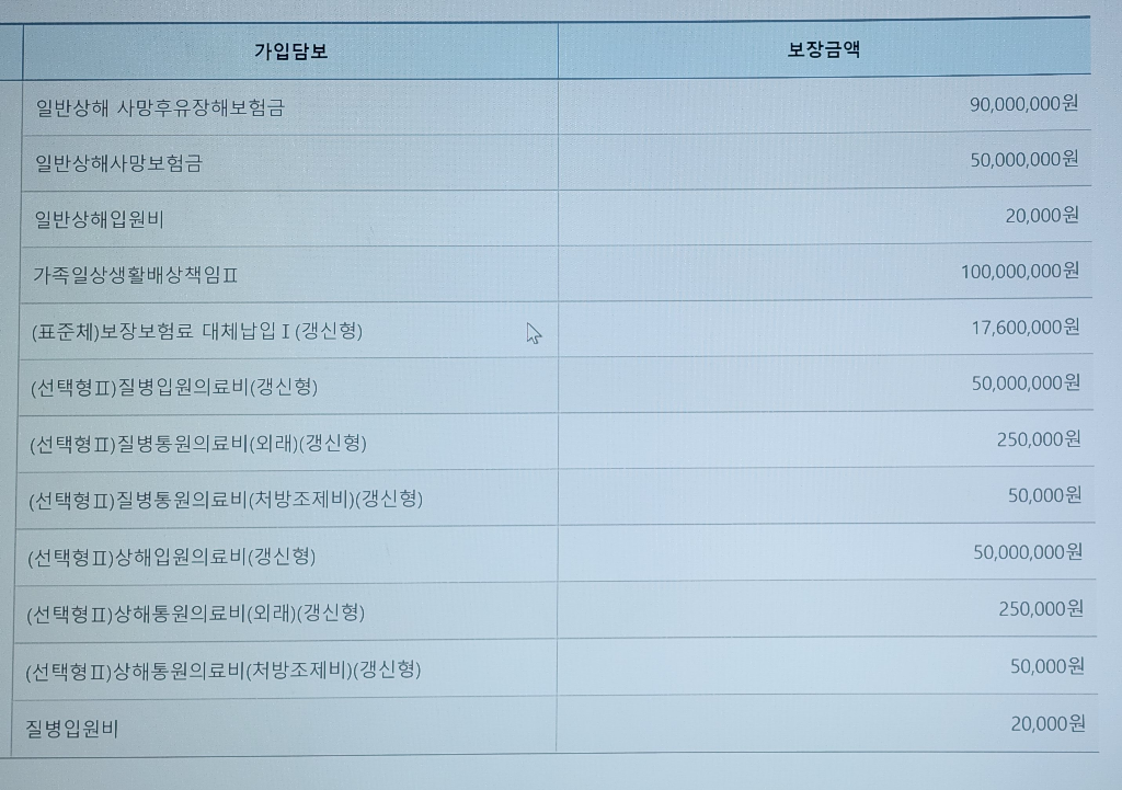 각종 입원비와, 상해사망, 가족배상책임보험 다 필요한 특약이니까요~