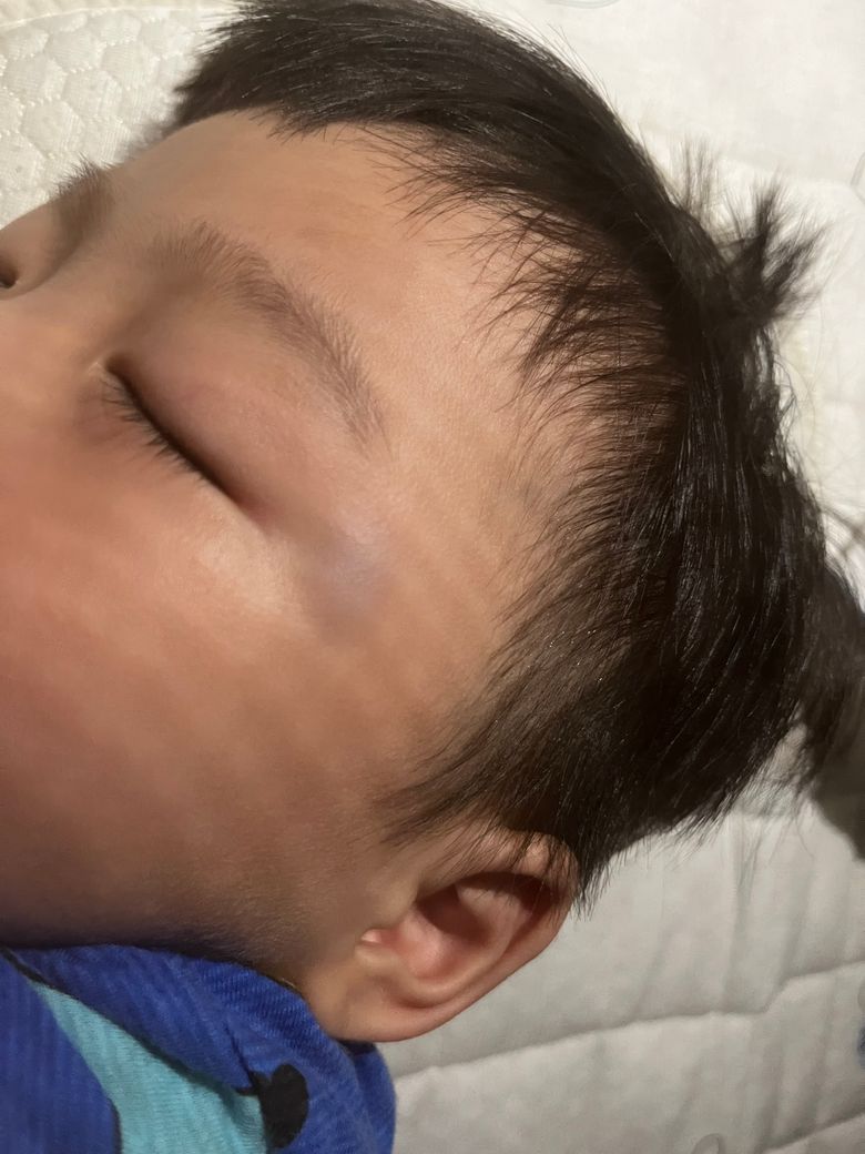 아이가 악을 쓰면서 냉장고에 부딪쳐 붓고 멍이 들었어요. 눈 옆이라 걱정이 되어 문의글 남깁니다.