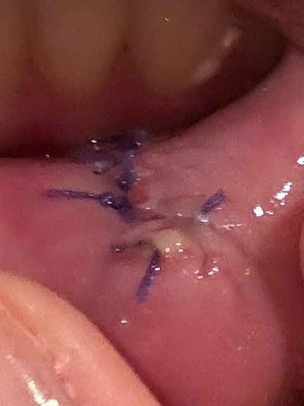 사진상으로 보면 잇몸이 아물면서 생기는 자연스러운 현상이니 너무 걱정하지 않으셔도 될것같습니다.