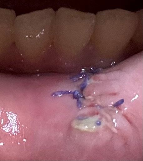 육아종 제거 수술을 화요일에 진행하였는데 수술 후 가장 크게 벌어져있던? 부위에 흰색 이물질같은 것이 생겼습니다