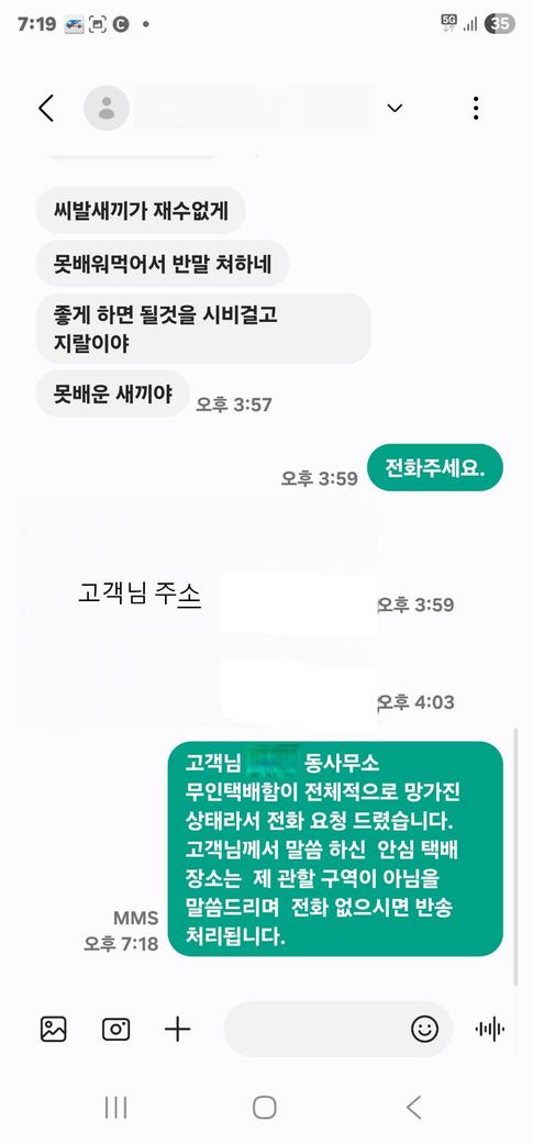 그런데, 그 고객님께 도저히 이해할 수 없는말과, 인격을 모독하는 문자를 받았습니다.