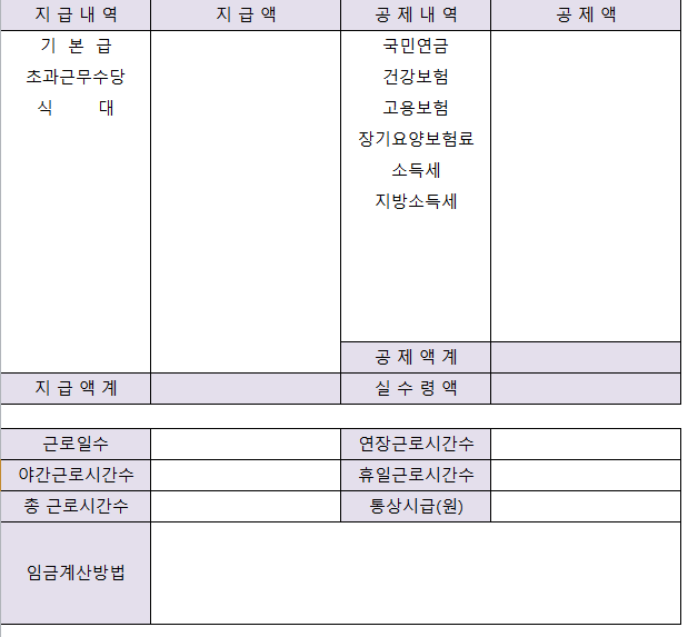 급여명세서 작성시 근로시간에 대한 질문 드립니다.