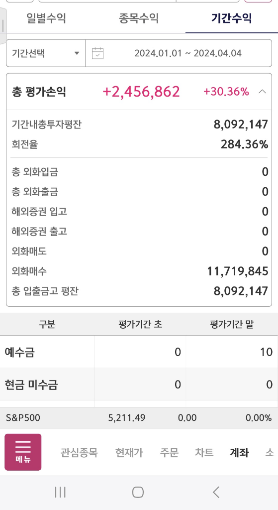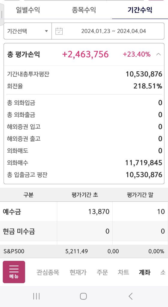 따라서 위 화면에서 보여주는 수익률은 말씀하신 것처럼 단순히 매매차익만으로 계산되는 것이 아니라 해당 기간 동안의 평잔을 바탕으로 계산되기 때문에 그런 결과가 나온 것 같습니다.