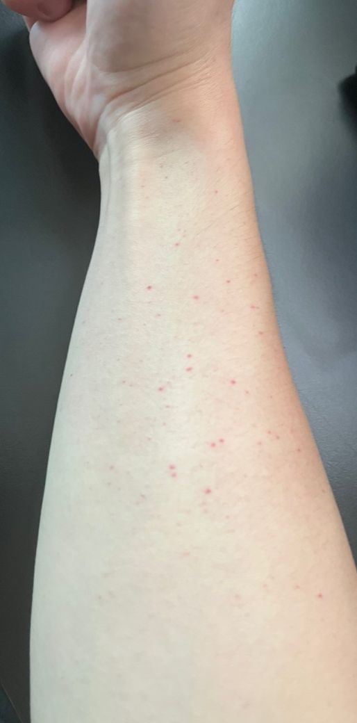 평소에 몸에 열이 많아서 피부가 따갑기도 합니다. 오늘도 밥을 먹고 너무 더워서 에어컨을 틀고 자리에 앉고 봤더니 오른쪽 팔에만 이렇게 피부 안에서 피가 터진 것처럼 뭐가 생겼어요. 이게 뭔가요 ?