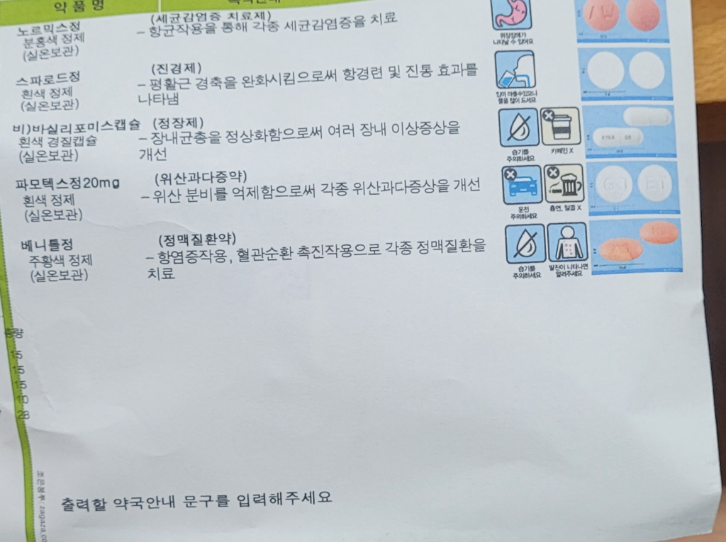 장염 증상에 대해 처방 받은 약으로 생각됩니다. 올려주신 처방내역을 확인시 항히스타민제는 포함되어 있지 않습니다.