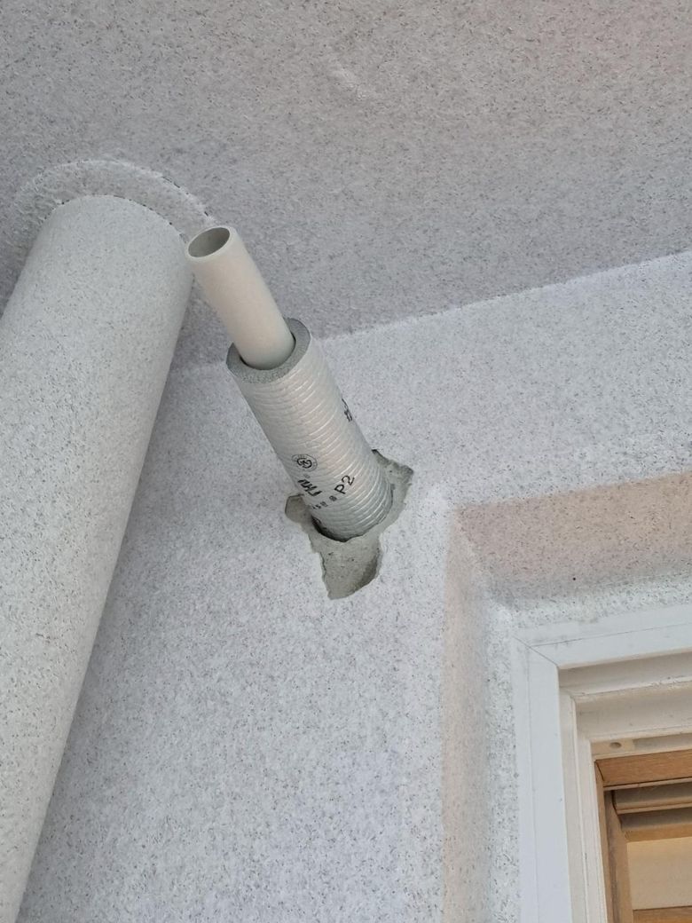 벽을 뚫는 과정에서 사진에 있는 곳만 탄성코트 잇는 부분까지 손상이 됐어요.