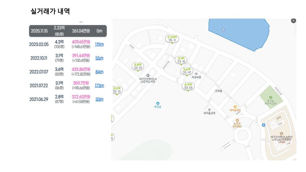 3) 2025. 11월 갑자기 평당 260만원 정도 토지 실거래가 이루어졌습니다.