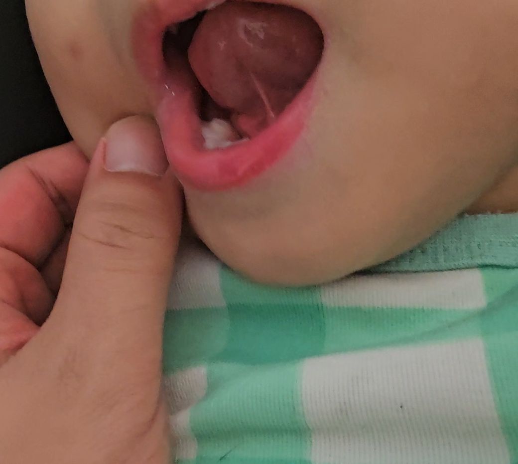 네 지금 사진상으로는 괜찮아 보입니다. 영유아검진에서도 별 말 없었다면 괜찮은 겁니다. 보통 설소대 단축증으로 설소대가 짧은 경우 혀를 쭉 내밀때 하트모양 또는 w모양이 됩니다.