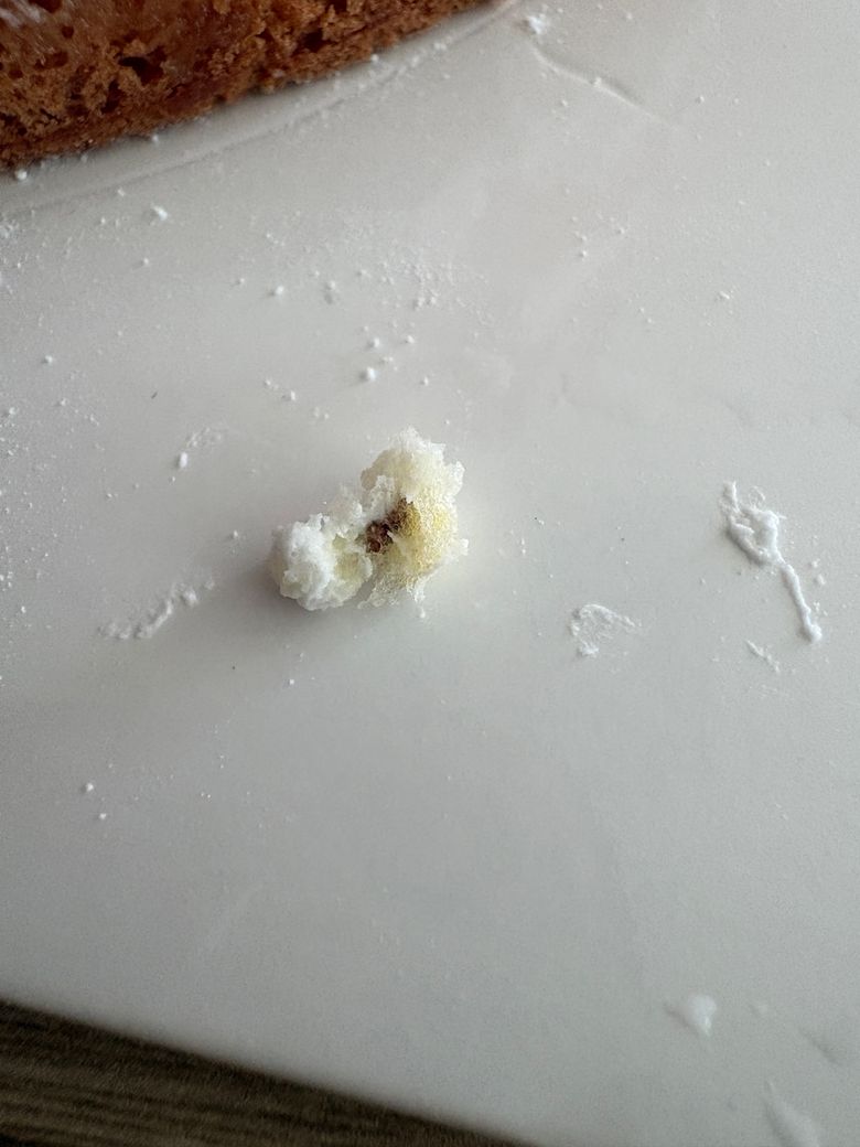 케이크에도 갈색 털 같이 생긴 것이 나왔습니다.