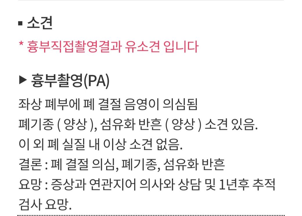 폐결절 음영이 더 신경써야 될 부분이긴 하고,, 애매하면 흉부CT 검사를 고려할수는 있겠지만,,