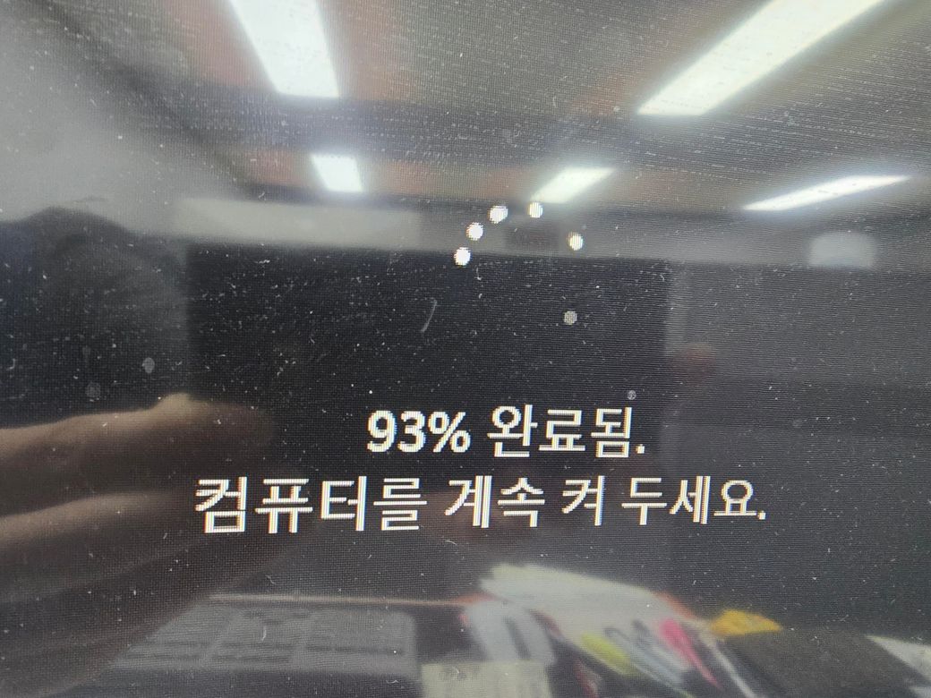 업데이트 후 이 화면에서 한 시간이나 지났는데 부팅이 안되고 있네요