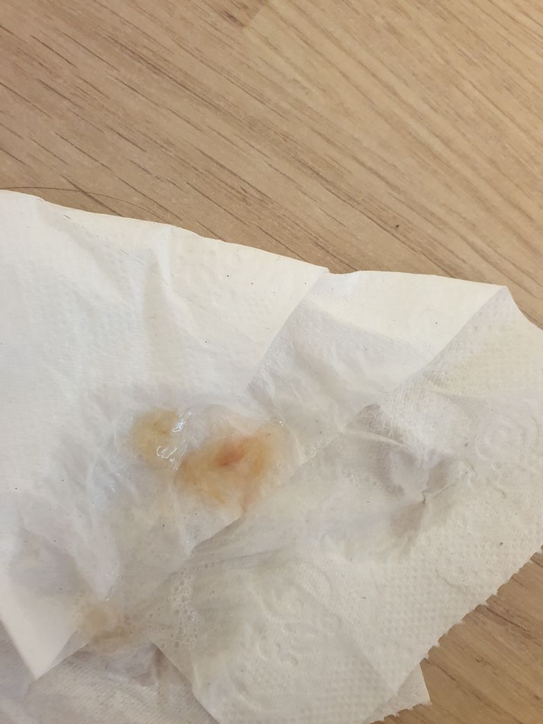 계속 목이아프고 목소리도 쉬고 안좋았는데 어제 외출후 갑자기 뱉을려고한게 아니라 가슴에서 목으로 정말 총알처럼 가래한덩어리가 나왔습니다. 똥그랗게 모양의 노란피가래였고 가래가 찹쌀떡처럼 엄청진득했습니다. 뱉고난후 목 한쪽이 계속 엄청아팠 습니다. 사진상 가래는 펼쳐놓은 가래입니다.