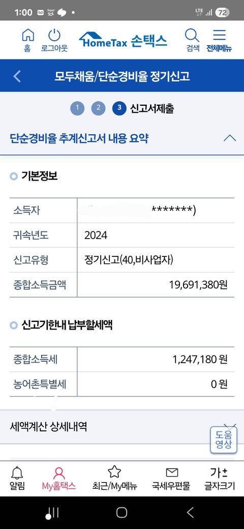 제가 우연찮게 종합소득세 신고조회를 해보니 위에 표처럼 뜨더라고요