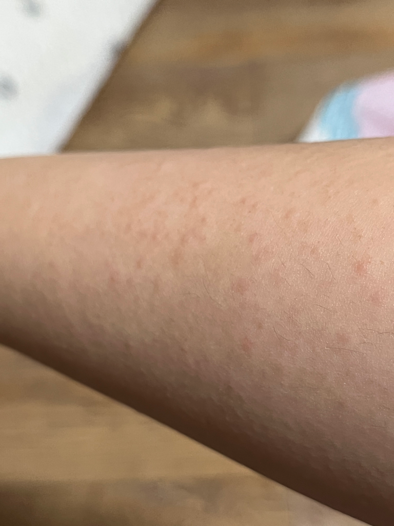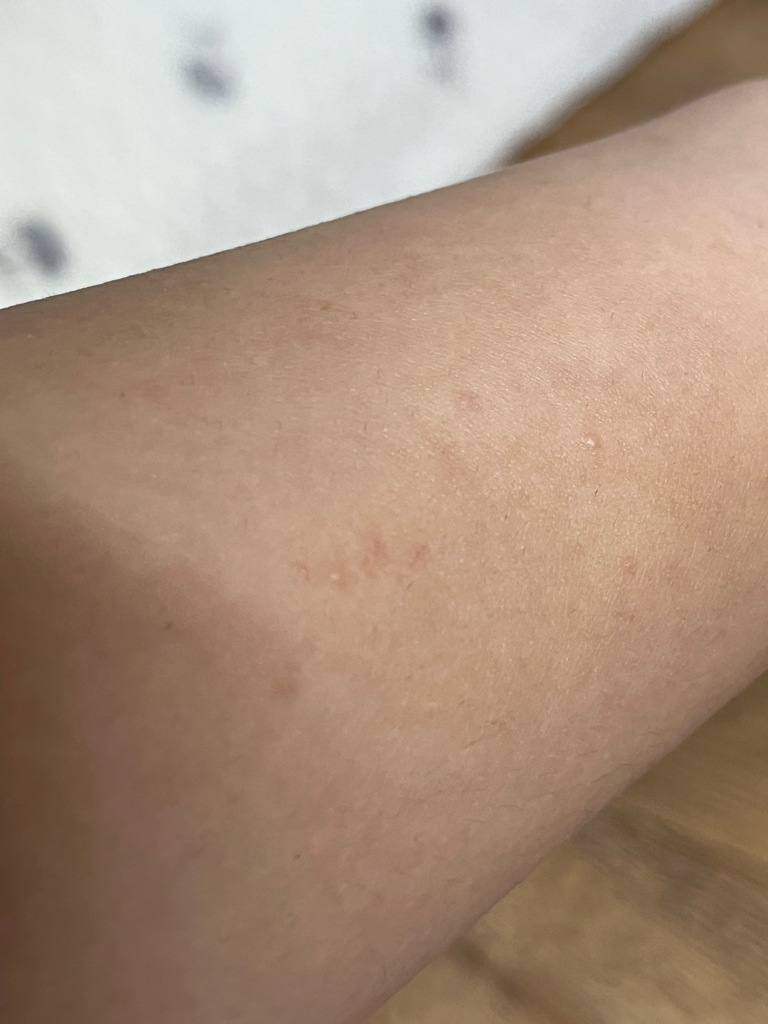 접촉 피부염이나 피부 알러지 반응으로 인한 두드러기의 증상과 비슷한 증상입니다. 답변이 도움이 되시길 바랍니다. 정확한 것은 피부과에서 직접 상담 후 필요약을 처방 받는 것을 권유드립니다.