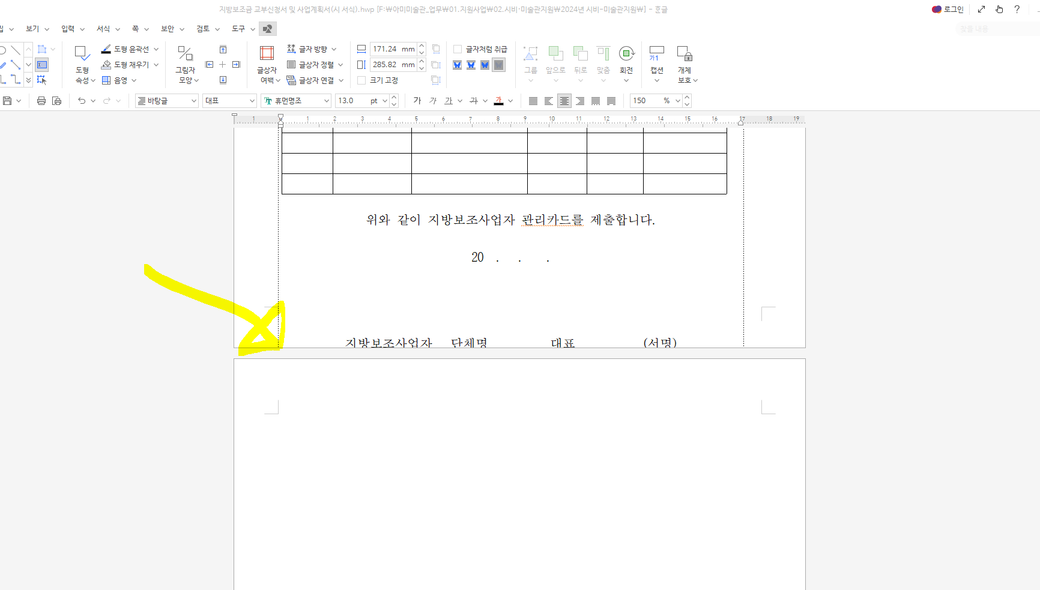 글상자 박스 안에 텍스트 양이 많아서 그런 것 같습니다. 텍스트 양을 줄이시거나 다음 페이지로 보내고 싶으시면 글상자 박스 대신에 표박스를 사용하시면 되는데, 표박스의 개체 속성에서 글자처럼 취급에 체크를 해제하시면 됩니다.