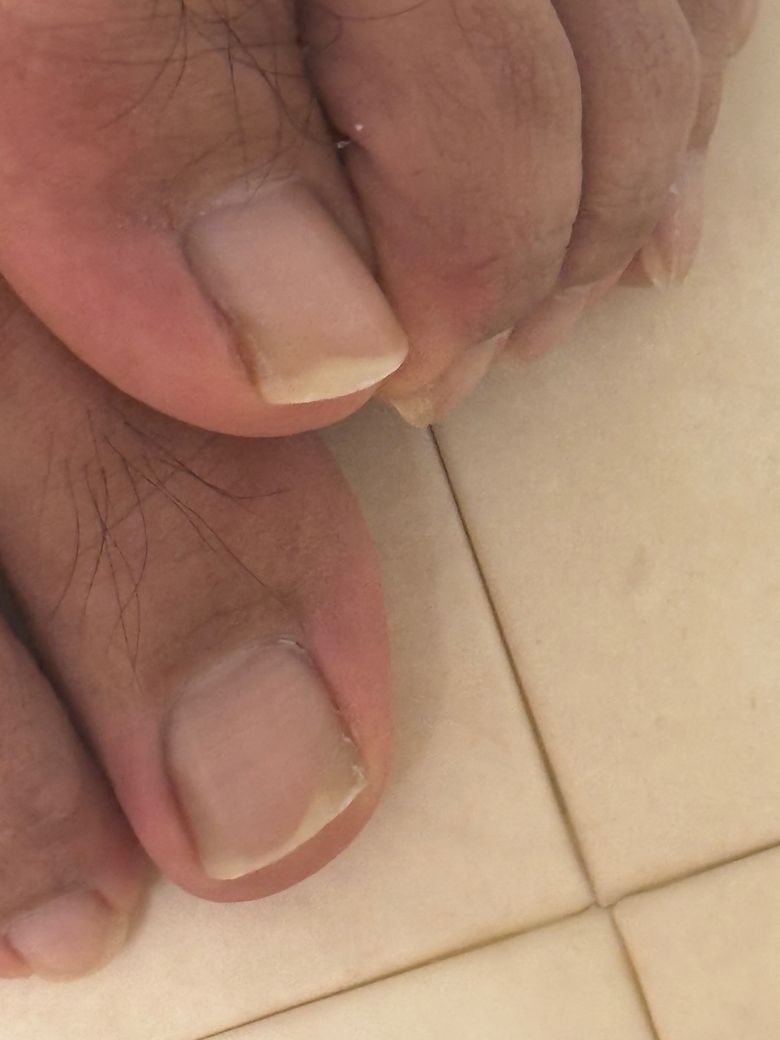 올려주신 사진으로 미루어 발톱 무좀의 가능성이 생각됩니다.