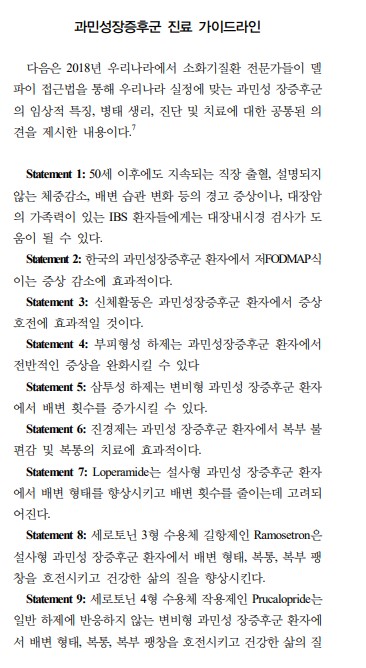 과민성 장 증후군의 치료 가이드라인; 건국대학교 의과대학 내과학교실; 김 정 환