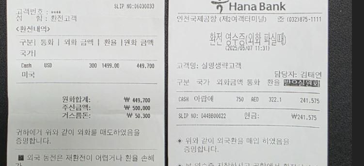 환전한 영수증 금액도 맞고 영수증금액도 맞는데 이렇게 차이날수가있을까요?...