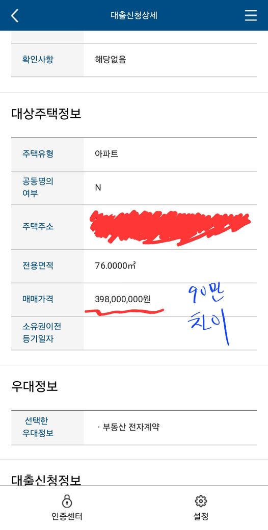 디딤돌대출 승인됐는데요. 신청서 금액과 실제 아파트 매매 금액 차이가 있어요. 90만원