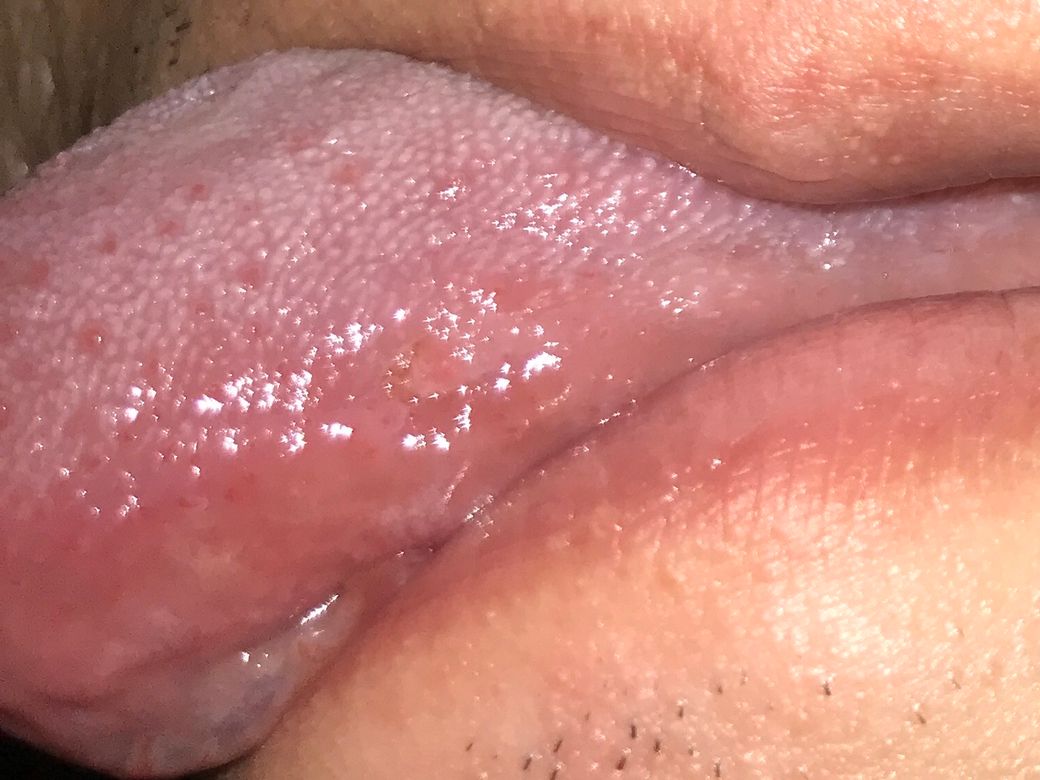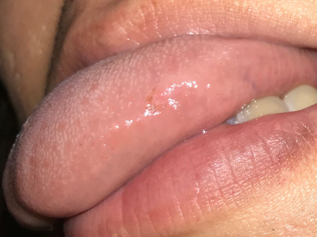 혀를 자주 씹어 생긴 외상성 궤양으로 보여집니다 오라메디 등 구강 내 상처에 발라줄 수 있는 연고 바르세요