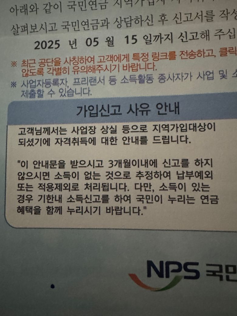 국민연금 가입신고 안내가 왔는데요!