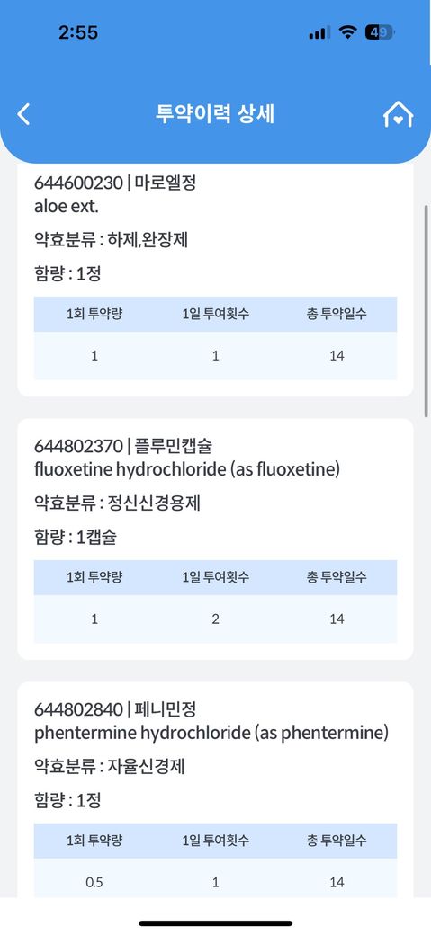 수 목 금 토 일 , 5일 복용안햇는데