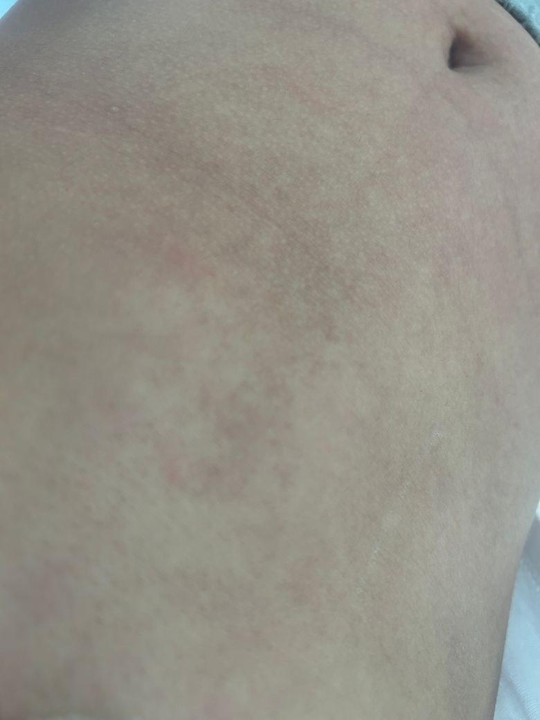 보여주신 사진으로는 피부 병변이 잘 보이지 않습니다.