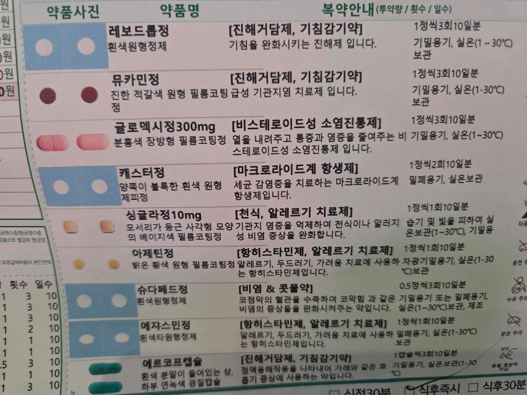 사진과 같이 감기약과 전립선약을 처방 받았는데 같이 복용하면 안되는 약에 대해서 궁금합니다