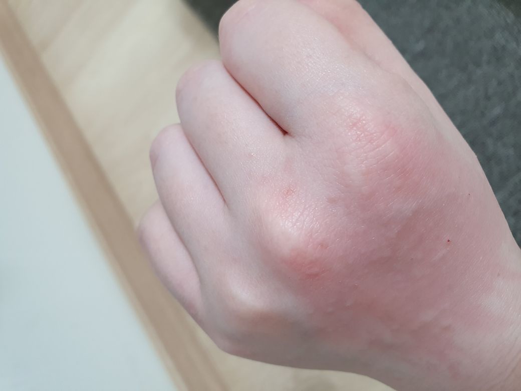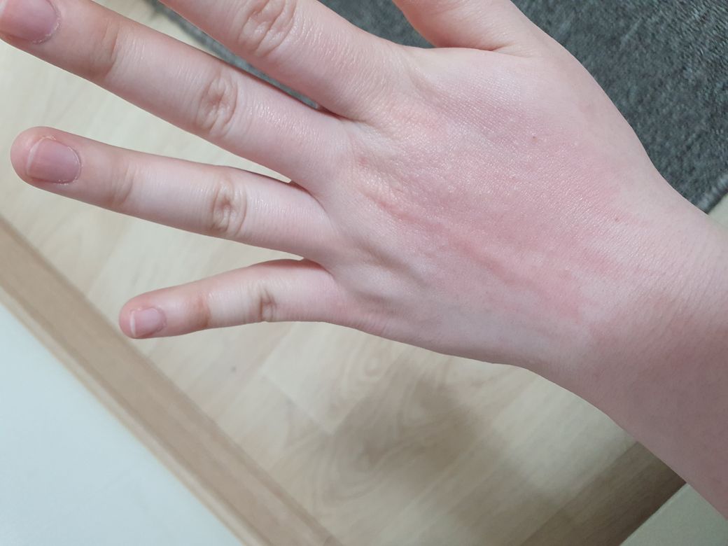 팔, 손등이 간지러워 긁으면 동글동글한게 올라와요(사진3~5)